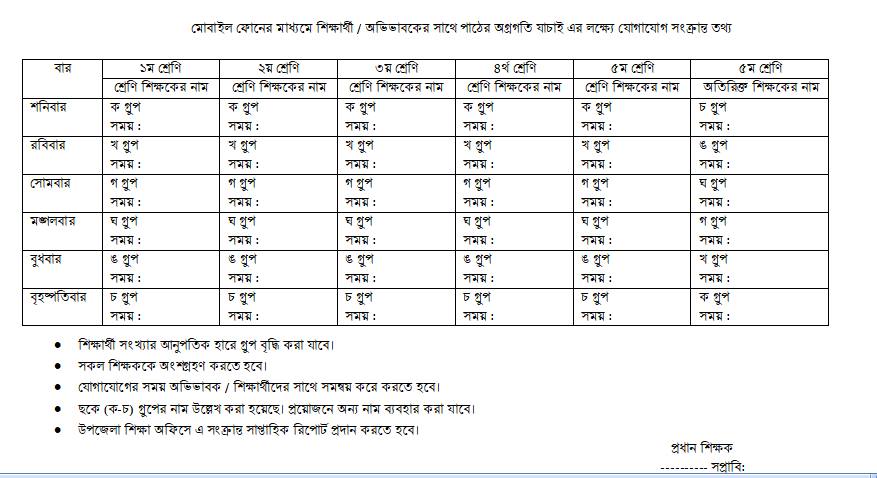 Sample format for maintaining cell phone contact by teachers with students regarding keeping them in learning process.